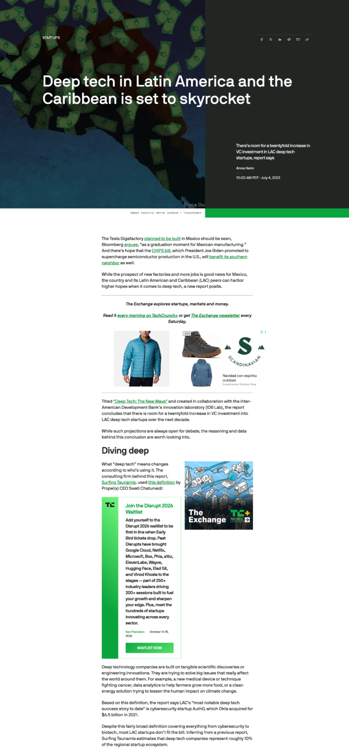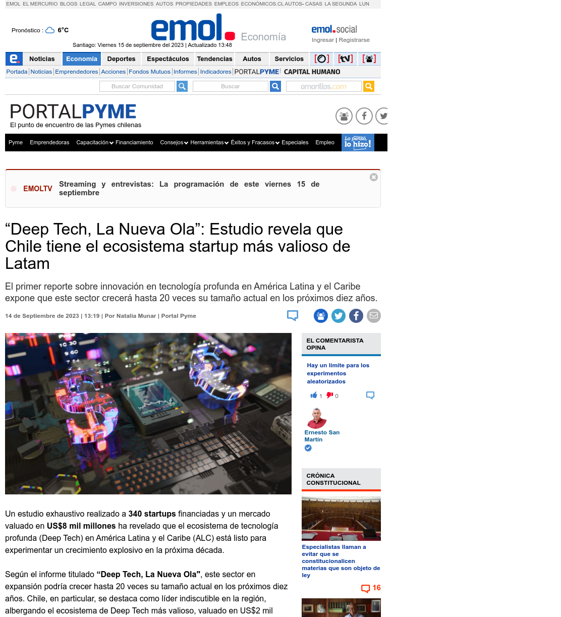 La estrategia de comunicación de Kipus para el estudio «DeepTech, la Nueva Ola» generó 567 millones de impresiones a través de 49 publicaciones en medios con autoridad de dominio promedio de 70 puntos (máxima 97), alcanzando 1.41 millones de visualizaciones y 12,500 interacciones sociales. La campaña posicionó el ecosistema latinoamericano de 340 startups DeepTech valuado en 8 mil millones de dólares, destacando sectores como inteligencia artificial, biotecnología, energías renovables, vehículos eléctricos y fabricación avanzada. Este trabajo de relaciones públicas demuestra cómo las empresas basadas en innovación científica y desarrollo tecnológico en América Latina están atrayendo atención global, conectando emprendedores tech con inversionistas y formuladores de políticas públicas interesados en soluciones que abordan desafíos de sostenibilidad ambiental, equidad social y crecimiento económico en la región.