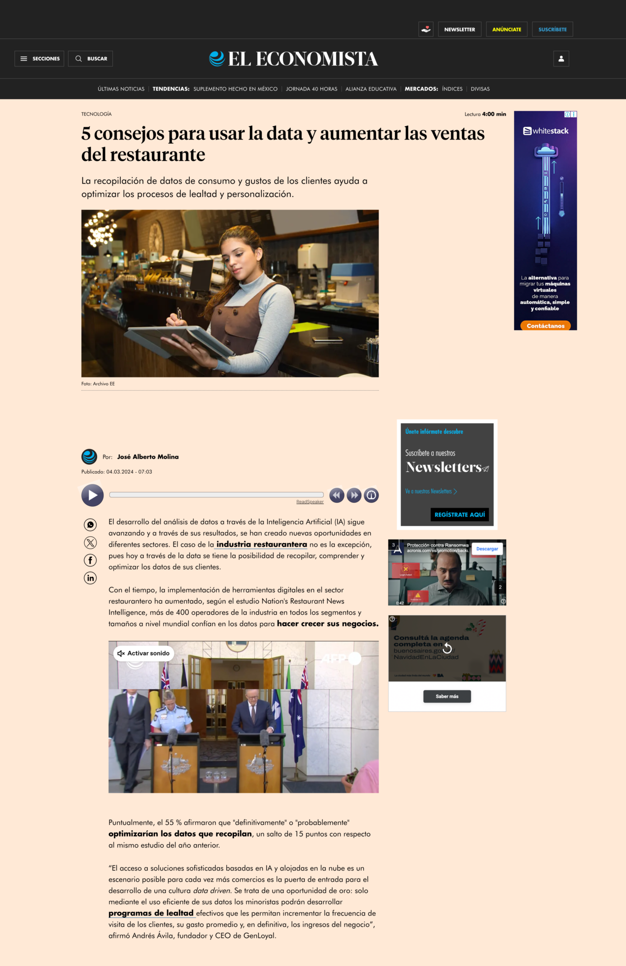 Durante 2023-2024, Kipus trabajó con GenLoyal para posicionar a la empresa como copiloto de marketing para minoristas en México, con foco en la industria restaurantera. La estrategia buscó establecer a GenLoyal y sus voceros como fuente de referencia en temas de tecnología aplicada al marketing, Data Analytics y programas de Loyalty, desarrollando una narrativa centrada en la combinación de datos y tecnología con el factor humano para crear conexiones emocionales con los clientes.